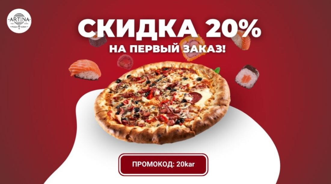 Доставка суши и пиццы Artina - это заведение быстрого питания. Мы предлагаем нашим посетителям популярные блюда, которые приходятся по вкусу жителям больших городов и не только. Для блюд в меню есть универсальное слово: фастфуд - когда-то считавшаяся уличной, эта еда сегодня может посоревноваться по качеству приготовления и вкусу с другими кухнями.